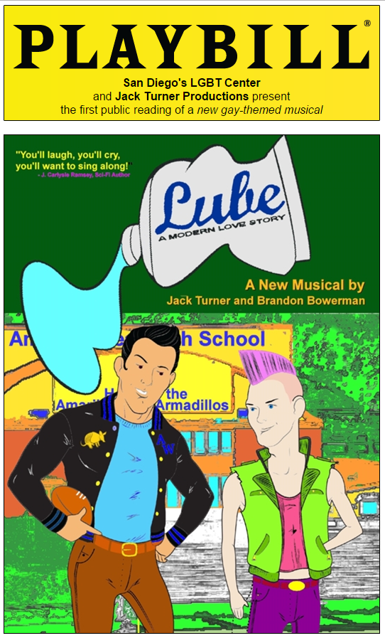 most intolerant students. I grew up in the 60s and 70s in a small town called Sitka, Alaska. I knew that I was gay from a very young age – 8 or 10 at least. I endured 'faggot' jokes from my father who had no inkling that his oldest son was one of those guys he was ridiculing, and I wasn't about to enlighten him. But hiding it from him was easy as he, from as far back as I can remember, rarely had time to spend with his children, or his wife for that matter. It was bad enough when my father called me as "useless as tits on a boar hog" for not knowing what a Skil Saw was (how much skill does it take to operate a circular saw?), or what the difference was between a 6- and a 12-point socket set – not that he could ever be bothered to teach me these things that he thought I should automatically know as a member of the male persuasion. Heaven forbid that I would even consider telling him I was queer. Growing up, I didn't know a single other person who was gay. There was a definite dearth of role models -- someone, anyone I could look up to. I was desperate for a connection of any kind. I searched dictionaries, encyclopedias, and every book at the library for the merest mention of the word 'homosexual' to prove that there were others like me out there somewhere. I fixated on Paul Lynde on The Hollywood Squares and Charles Nelson Riley on The Match Game, even though, to my knowledge, they never actually acknowledged being homosexual at the time. I came out to my family and friends when I was 21. I served in the US Navy from the time I was 18 until I retired at 38. This was before "Don't Ask, Don't Tell," so while I remained firmly ensconced in the closet at work for purely practical reasons, in all other aspects of my life I was openly gay. In my early 50s, I decided to start writing. I joined a Writer's Group in Buffalo, NY and began to write science fiction novels, self-publishing the first when I was 55. I also began writing musical theater around the same time, encouraged by my longtime musician friend, Faith Page. After finishing the draft of Wisteria – the first musical I ever wrote, one that I co-authored with Faith – and having enjoyed very much writing lyrics, I looked around for another musical theater project that would let me spread my wings. Thinking back on my childhood and the difficulties I had growing up gay, and seeing that apparently it hasn't gotten all that much easier, I wanted to write a musical that would provide, to a gay audience, the romance, self-affirmation, and thrill that Hairspray, Grease, and Wicked on Broadway provide to straight audiences. I wanted something that included positive gay role models, something that gay kids could identify and empathize with, something that simply says, "You are normal. You're not a freak. There are millions of others just like you. What you are feeling is not perverted, or even unique. Relax." And as Queen Angel sings in LUBE during a climatic moment, "Just love yourself; the rest will fall in place." I started out to write a pure parody with influences from the stage play, Grease. The project quickly veered from parody into an entirely new direction. My play, LUBE, was inspired, in part, by Grease, but it is far from derivative. It was also influenced by Hairspray in that it deals with today's social equality fight, the rights of the LGBTQ community to enjoy the benefits of society as enshrined, in the Constitution: Life, liberty, and the pursuit of happiness. It was inspired by Wicked in that it is also a story of two friends who struggle to overcome adversity in their own unique ways. But LUBE shares a unique relationship with Grease. The name itself is a double-entendre with reference to the original and to the gay theme. While it shares a similar overall story arc as the Broadway show -- lovers who meet, fall in love, then fall apart due to the influence of family and friends -- the characters, storyline, and plot points are uniquely mine. The lyrics were written to be reminiscent of the original music but with their own unique flair. I registered for and received my first copyright for the work in 2012. I just re-registered the copyright in 2018 to include all the music composed by Brandon Bowerman. Ultimately, I wanted to create a play that would provide those gay role models that I never had as a child. I wanted something that showed gay kids in a positive light, surrounded (for the most part) by supportive students in a contemporary setting. I wanted to create something inspiring, uplifting, exhilarating even. I wanted something that a young gay person could walk of saying, "I'm gay. That was gay. They fell in love. They fought through their problems and got back together at the end to live happily ever after. That could me be. There is hope, there is love, there is someone out there for me." The topics that I chose to explore are the very issues I faced growing up, and ones that I know are still faced today by many of those growing up queer: 1. Whether to come out or stay in the closet 2. The consequences of hiding your sexuality from friends and family 3. The consequences of coming out 4. The negative impact that radical right religion has on a gay kid's self-image 5. Depression and suicidal thoughts while growing up gay, particularly for those afraid to come out 6. Bullying and harassment of those perceived as gay, whether or not they are actually gay 7. The many variations in sexuality and gender expression, and the fact that there is no 'right' or 'wrong' 8. That simply being gay is perfectly acceptable, and not the worst thing in the world; being gay is actually something to be celebrated The musical includes a couple of drag queens, and since this is a gay play, it even has the obligatory make-over scene. The story of Manny and Andy falling in love, breaking up, and (hopefully) getting back together is accomplished with a cast of characters that includes gays, straights, and bisexuals. It includes those acc